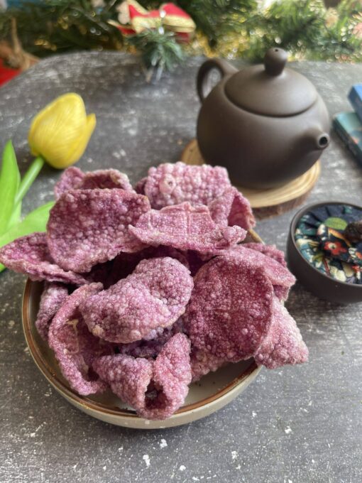 - Khoai Lang Tím (Korean Purple Sweet Potato Bugak/Snack / 자색고구마부각): Ngọt bùi, màu sắc quyến rũ, chứa anthocyanin chống lão hóa mạnh mẽ. 💜