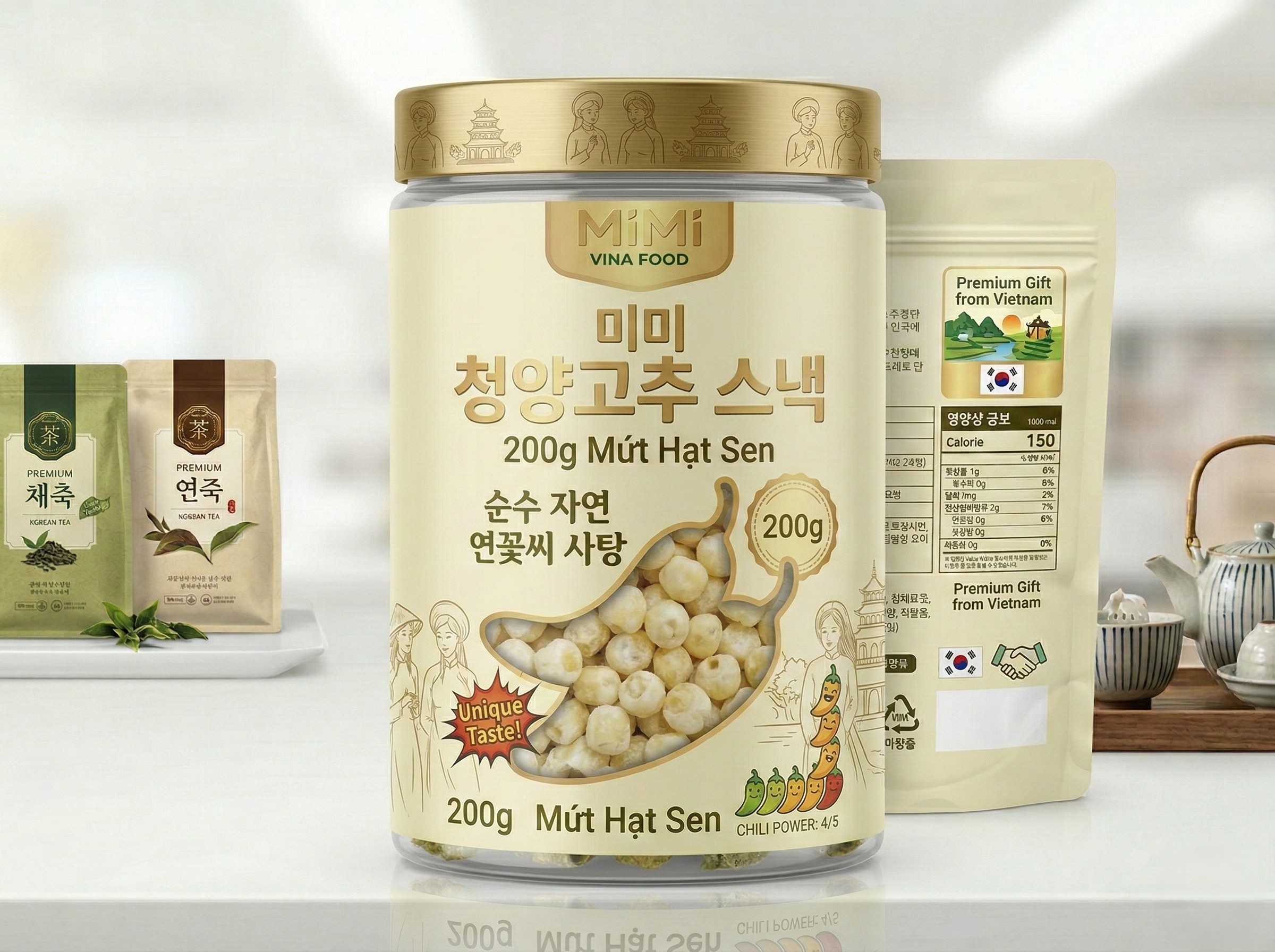 From MIMI VINA FOOD: We bring you more than just a snack; we bring a cultural experience. Our new Lotus Seed Jeong-gwa is the result of meticulous craftsmanship, blending the famous Hung Yen lotus seeds with advanced “Clean Label” preservation technology.